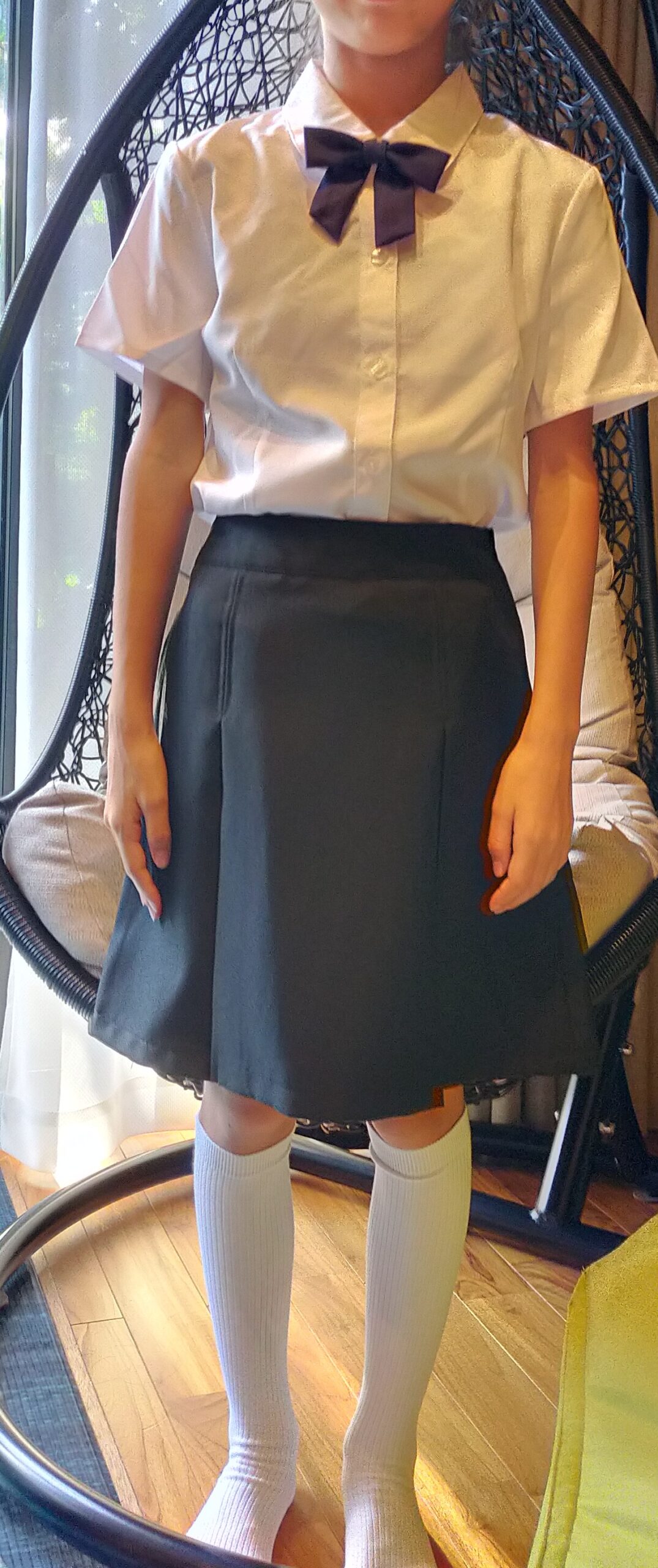 これもサンキにはあまり置いておらず、サンエーで購入。 上は半袖ブラウス、下は濃紺のスカート。 お値段は上下で約4,000円。**「ふだん着る体育着と、たまにしか着ないちょっとフォーマルな式服が同じ値段」**というのも、なんだか不思議な感覚でした。